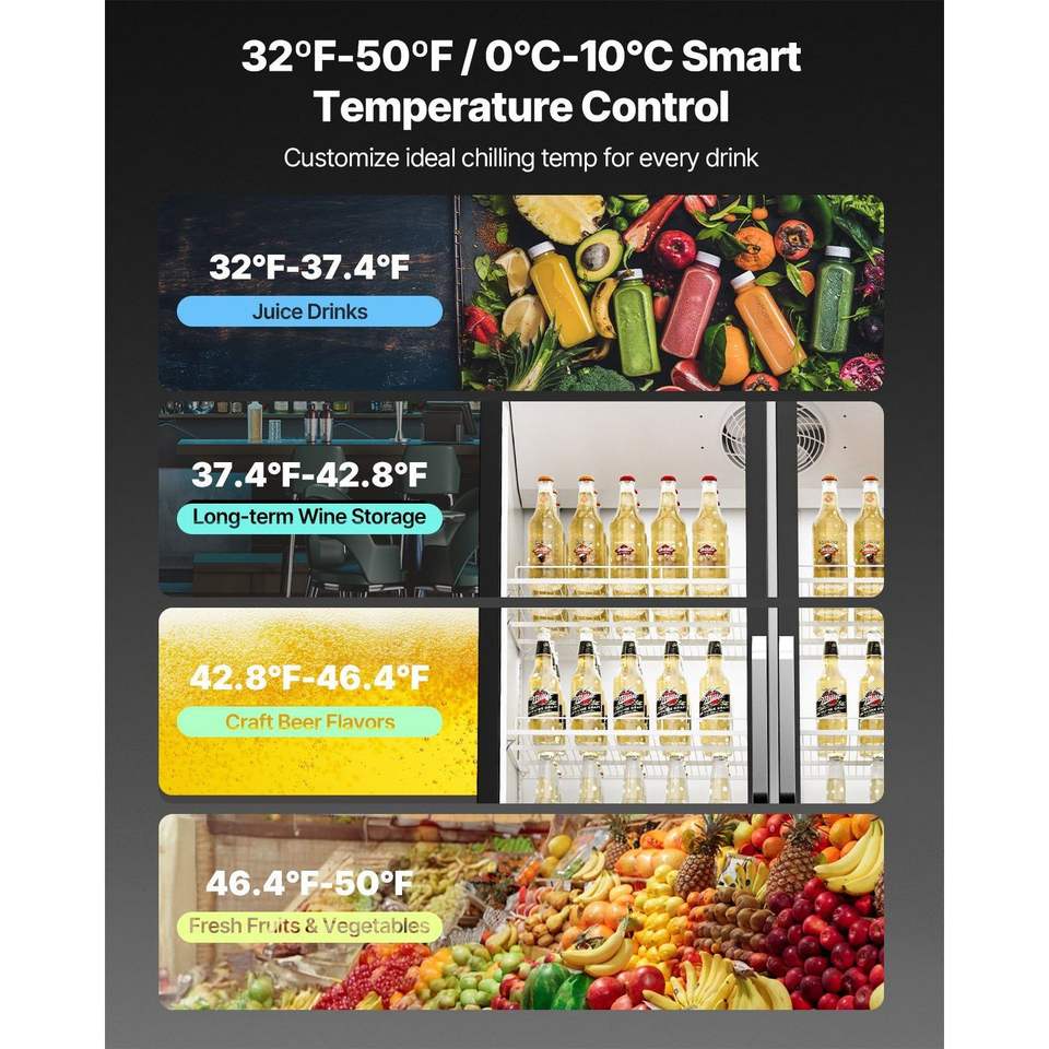 Frigorifero Commerciale per Bevande con Doppia Porta in Vetro da 26,69 CU.FT, Espositore Refrigerato per Vini
