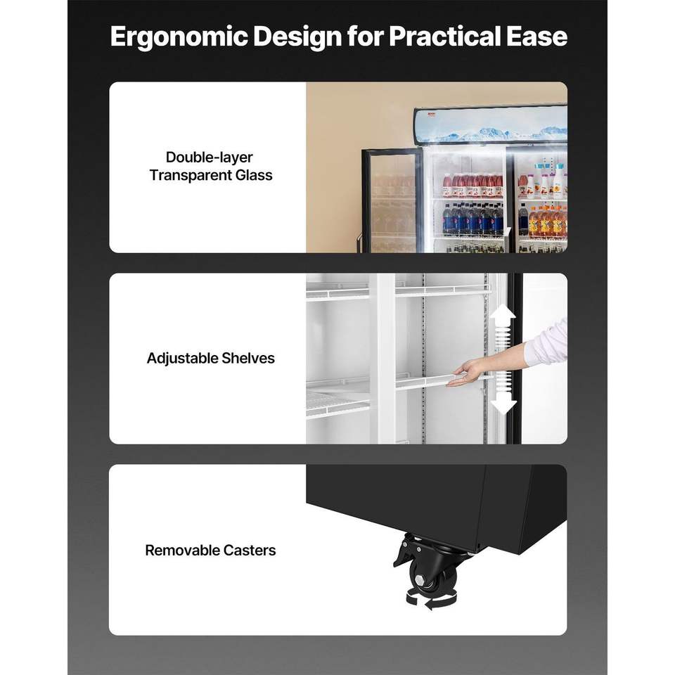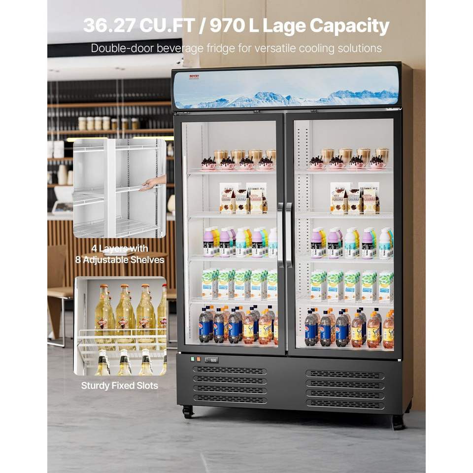 Frigorifero Commerciale Verticale per Bevande da 36,27 CU.FT con 8 Porte in Vetro Regolabili, Espositore a 2 Porte per Vino e Bevande