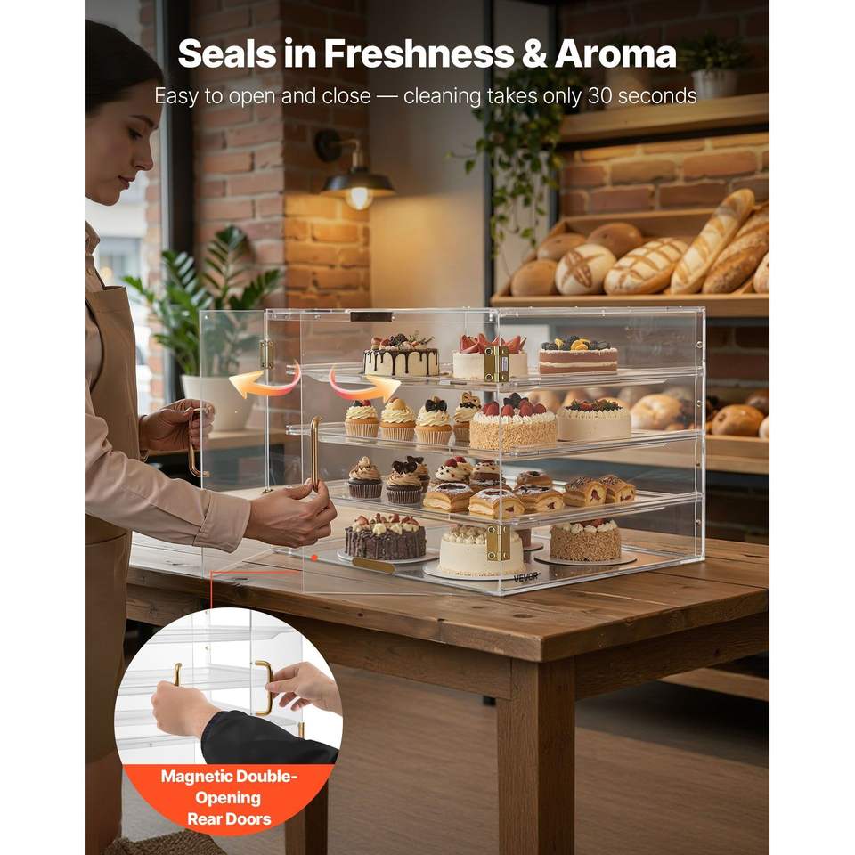 Espositore Commerciale a 4 Livelli per Pasticceria, Vetrina Trasparente in Acrilico da Banco per Pasticcini e Pane, per Cucina e Feste