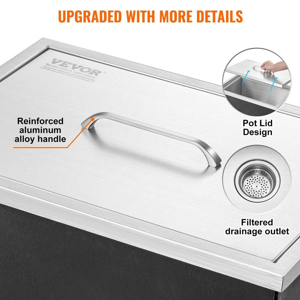 Contenitore per Ghiaccio Commerciale in Acciaio Inox da 40 Qt, 20"L X 14"W X 12"H, per Cucina Esterna, Bar e Vasche per Bevande