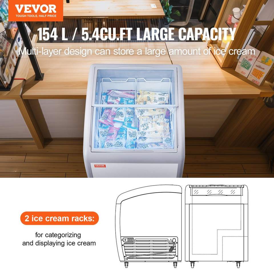 Congelatore Espositore Mobile per Gelato da 5,4 Cu.ft con Vetrina Superiore in Vetro per Ristoranti - Frigorifero Commerciale per Gelati