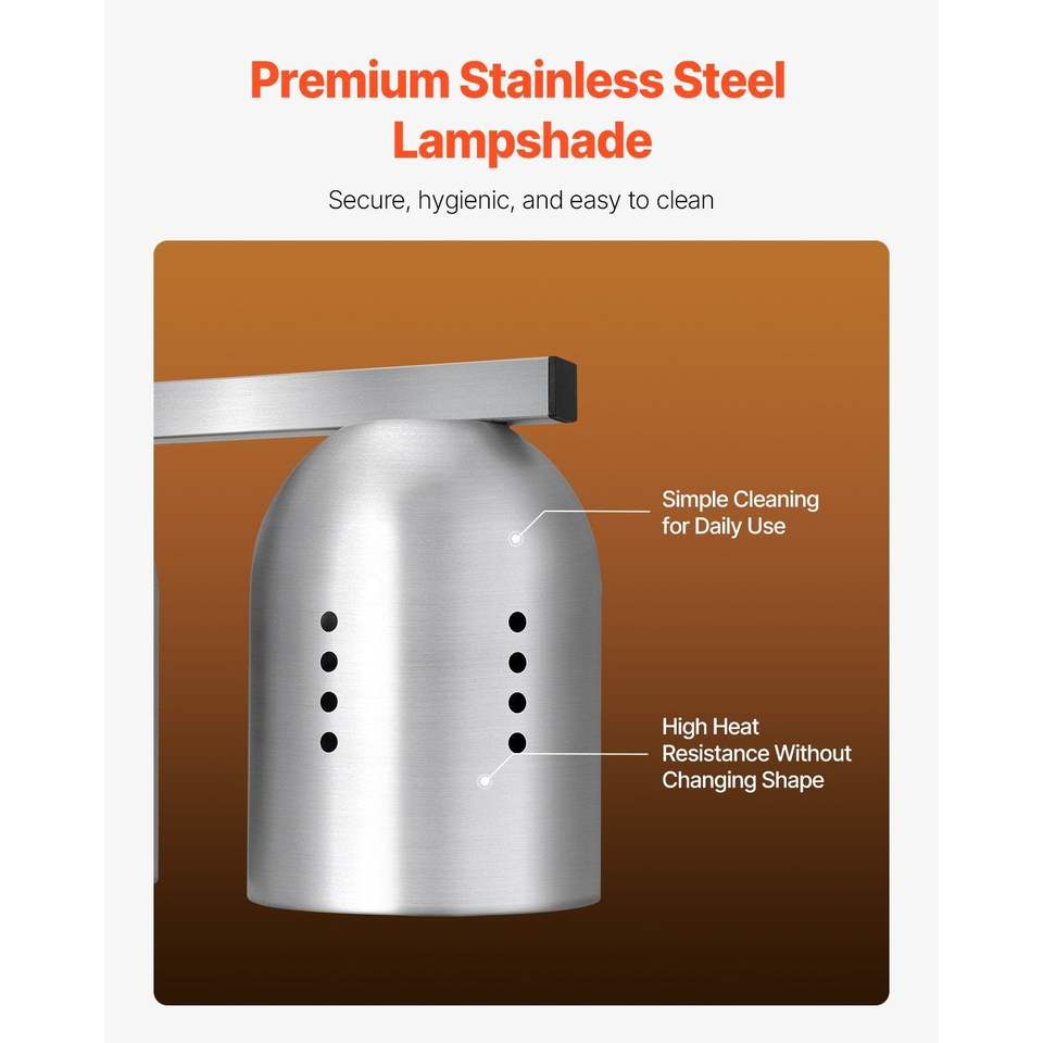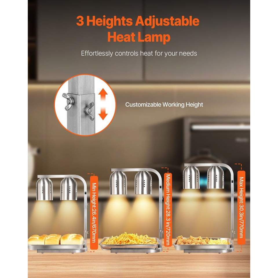 Lampada Riscaldante Commerciale da 500W per Alimenti, Elettrica Autoportante in Acciaio Inossidabile, per Scaldapatatine e Attrezzature per Mantenere Calde le Preparazioni