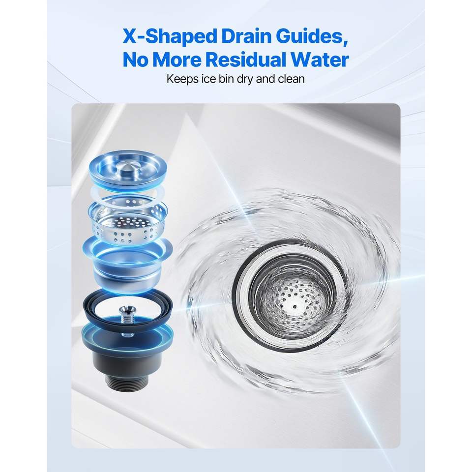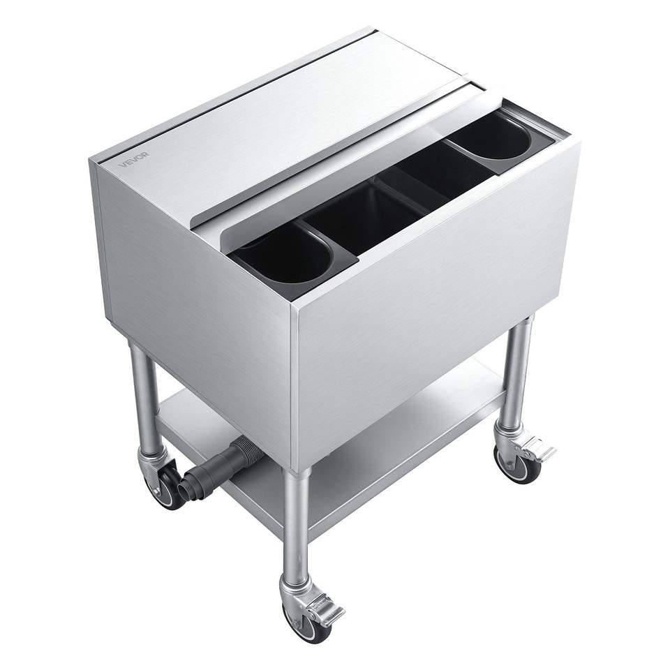 Contenitore per Ghiaccio Commerciale in Acciaio Inox con Coperchio Scorrevole, Capacità Massima 65,1 Qt, 24 X 19 X 35 Pollici, Vasche per Bevande con Portabottiglie