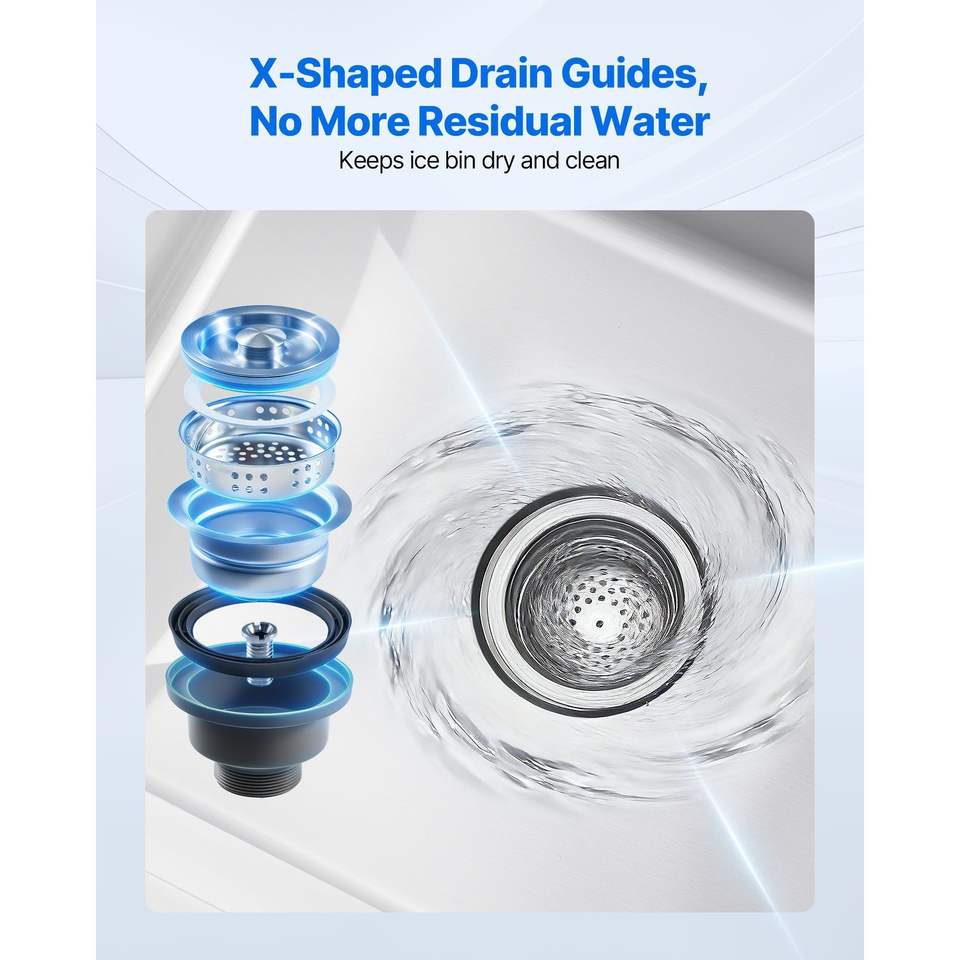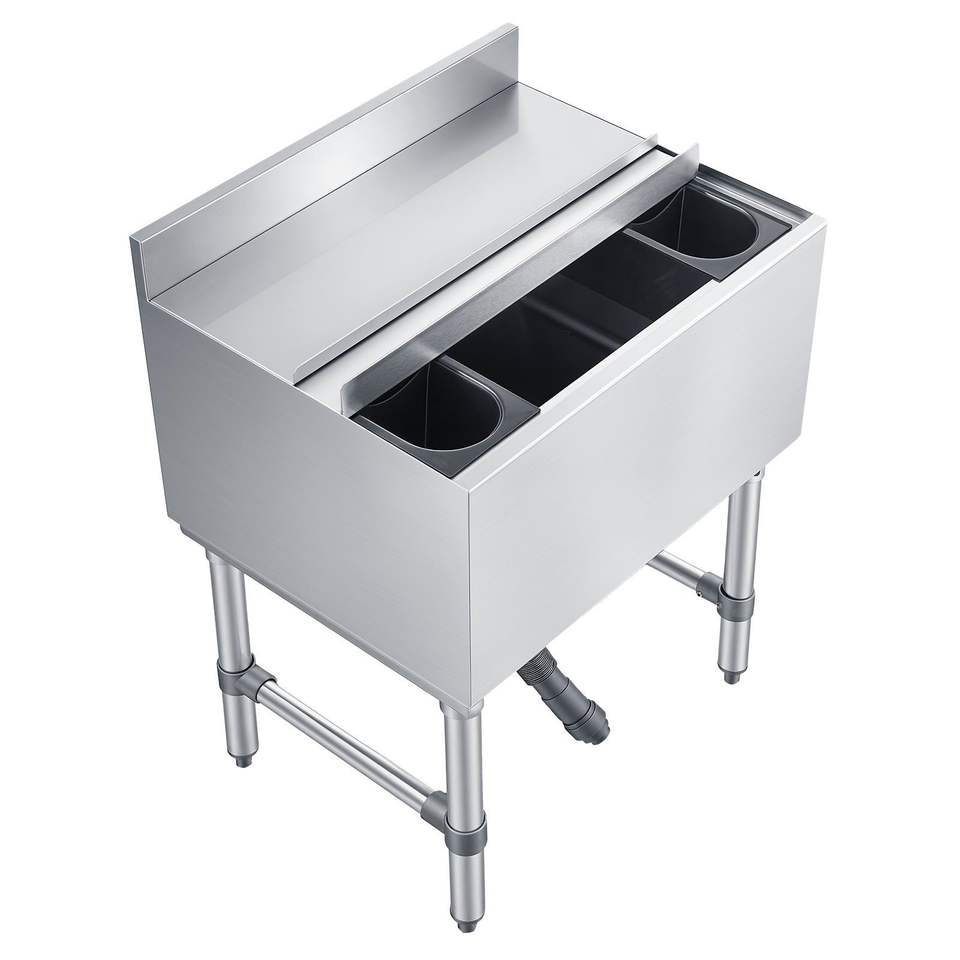 Contenitore per Ghiaccio Commerciale in Acciaio Inox con Coperchio Scorrevole, Capacità Massima 65,1 Qt, 24 X 19 X 33 Pollici, Vasche per Bevande con Portabottiglie