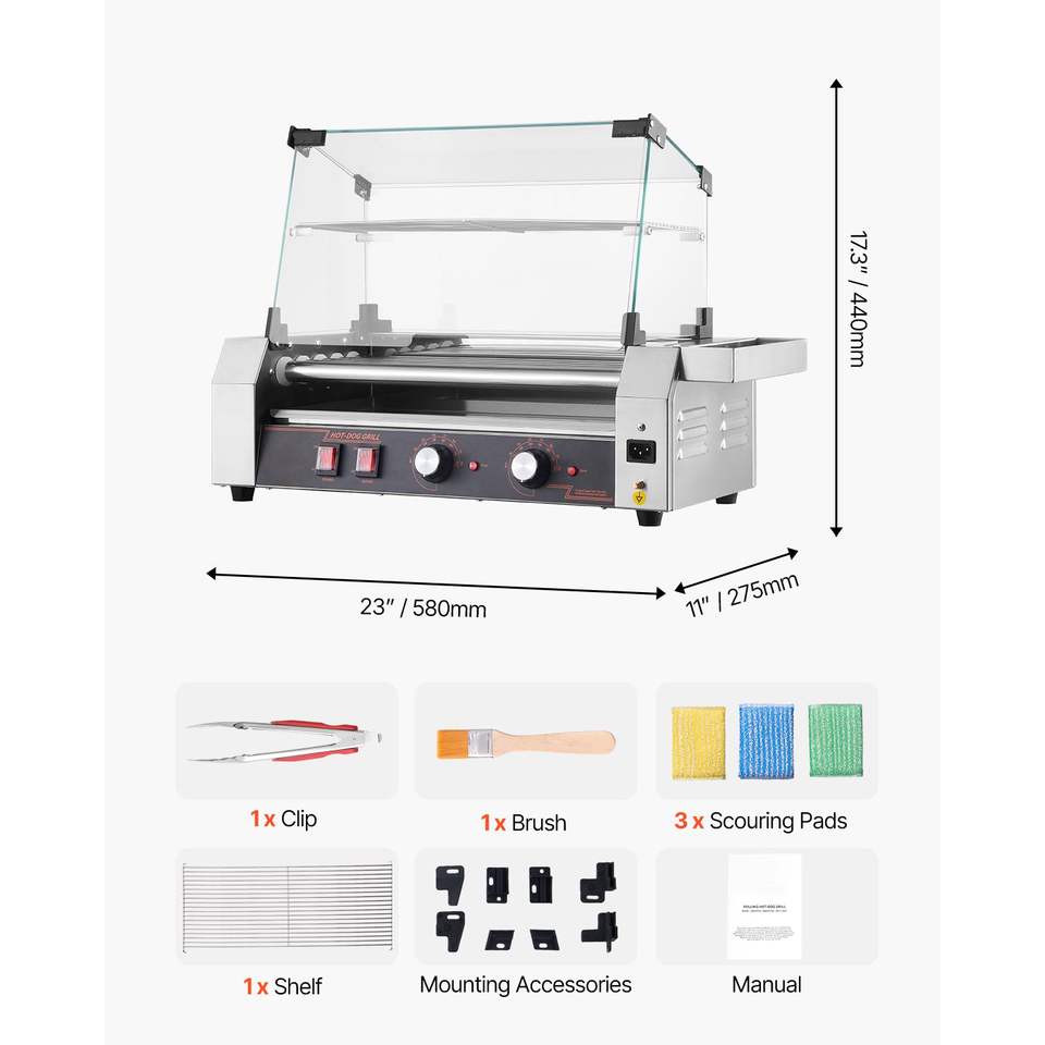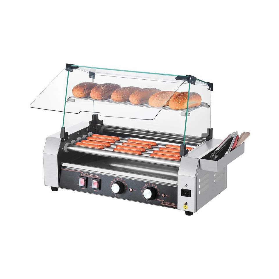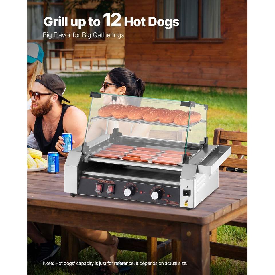 Commercial 750W Dual-Temp Control Stainless Steel Hot Dog Machine 12 Rollers 5 Rollers Sausage Grill Cooker Hot Dog Roller for
