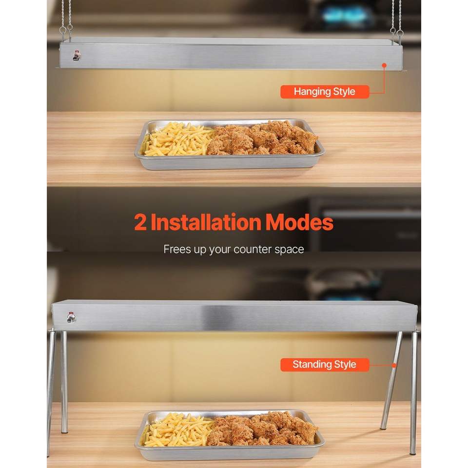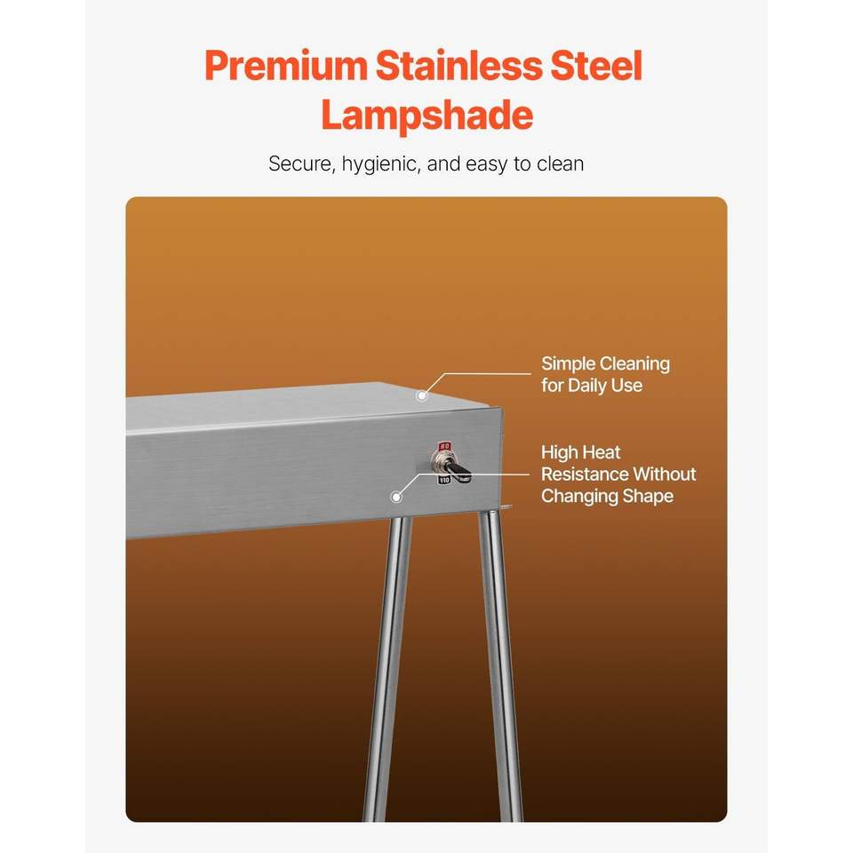 Lampada Riscaldante Elettrica Commerciale da 750W in Acciaio Inox, Riscaldatore a Striscia per Mantenere Caldi gli Alimenti