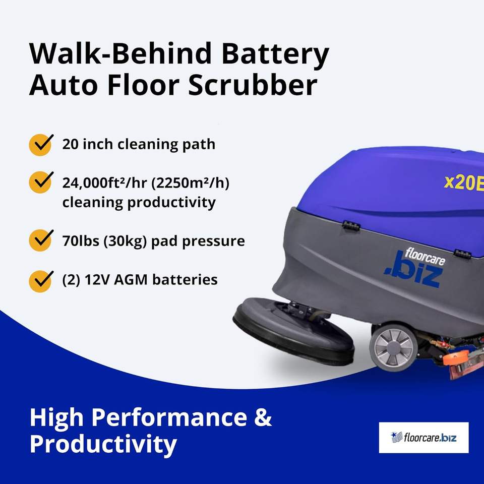 Commercial Auto Floor Scrubber Machine Walk-Behind Electric 20" Cleaning Path 16-Gallon Tank Industrial Vacuums 5-Year Warranty