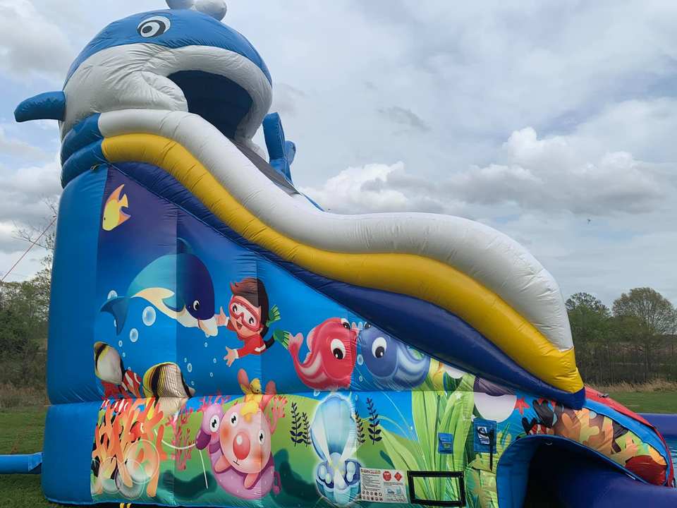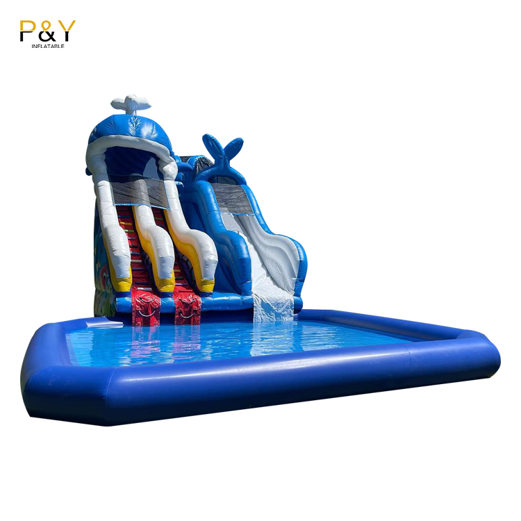 Commercial Backyard Jumping Bouncer the Big Whale Water Park Waterslide Dual lane Inflatable Water Slide With Pool