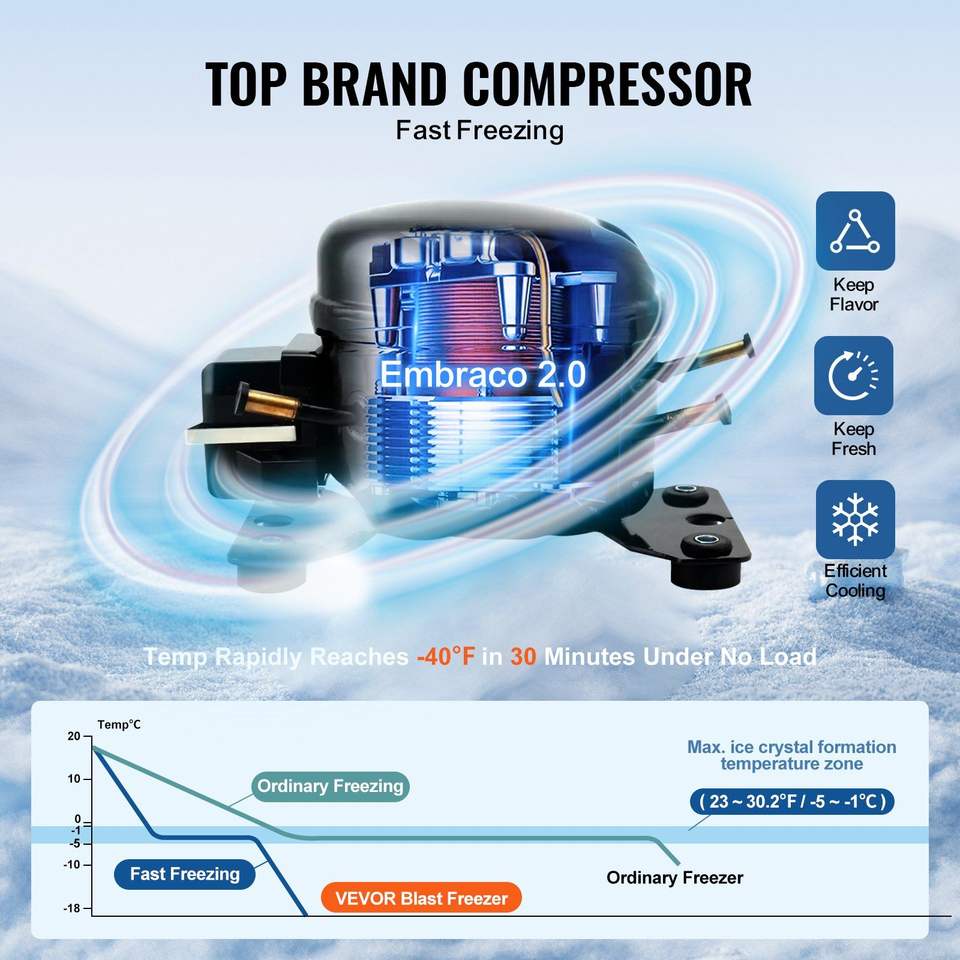 Congelatore rapido commerciale da 80 L/2,8 piedi cubi con 3 vassoi e 4 modalità di congelamento, attrezzatura di refrigerazione per cucina