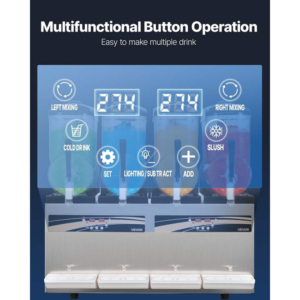 Frullatore Commerciale 12L/3.17Gal con 4 Serbatoi, Macchina per Slushy Commerciale Autopulente, Macchina per Bevande Congelate, Macchina per Margarita
