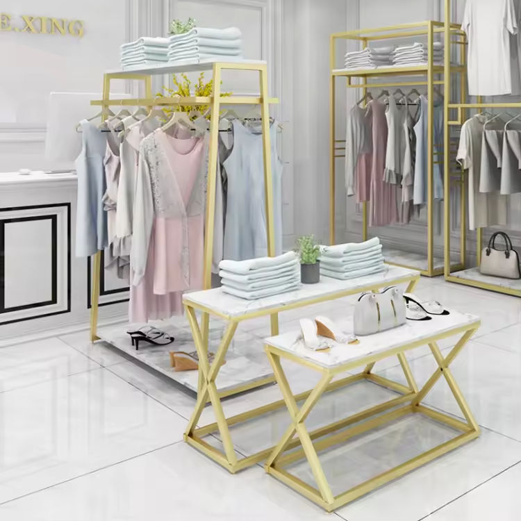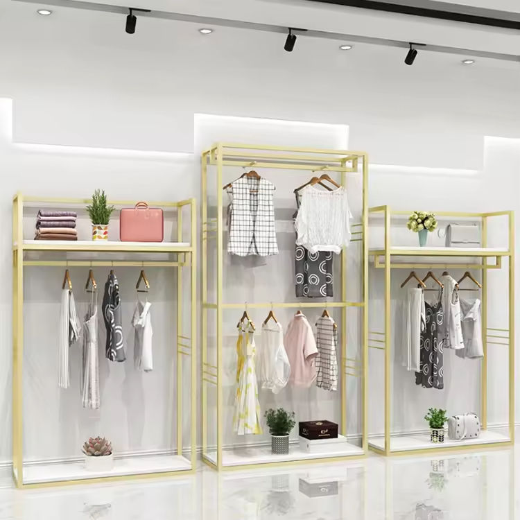 Espositore per abbigliamento Boutique commerciale-robusto negozio di abbigliamento da donna in metallo facile da montare appendiabiti verticali