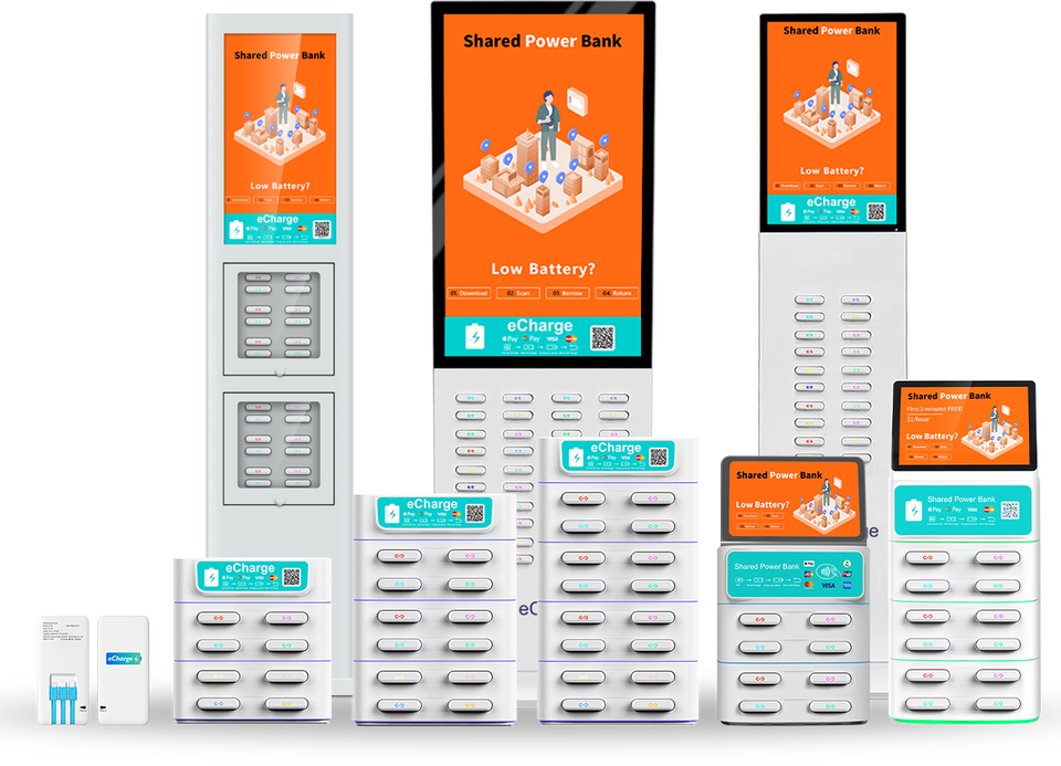 Stazione di Ricarica Commerciale per Cellulari Power Bank a Noleggio con Uscite da 50W 65W 10W e Funzione di Supporto