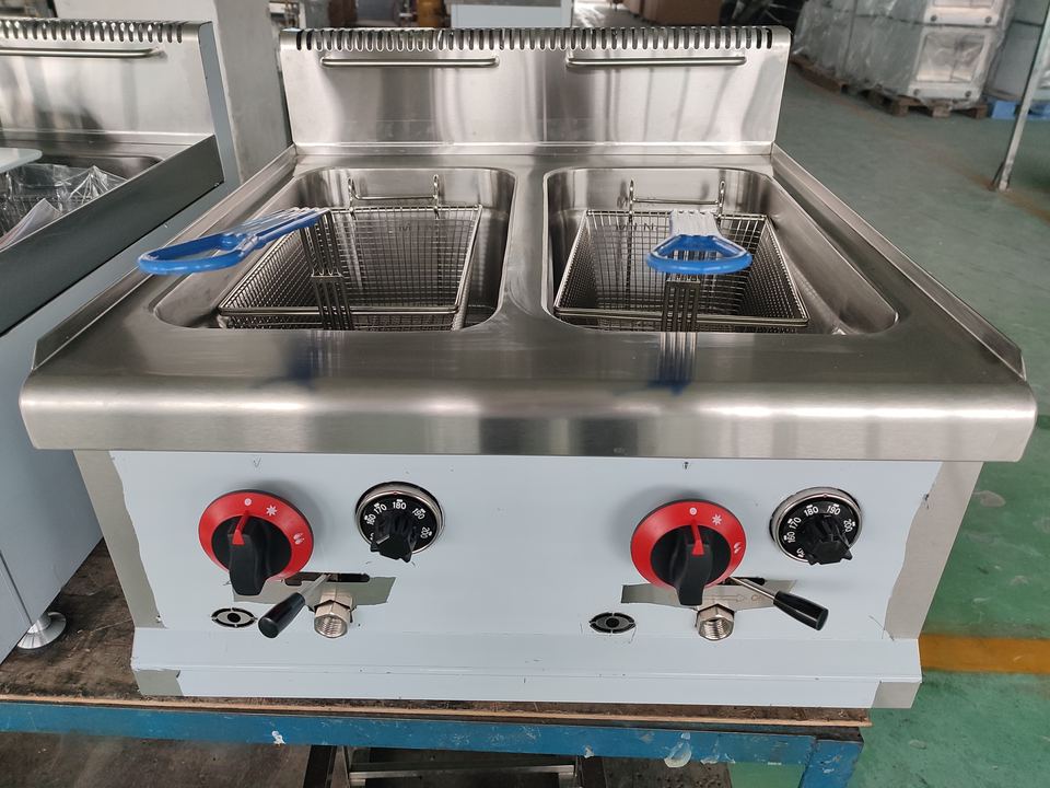 Controsoffitto commerciale 2 serbatoi 2 cestelli 28 L friggitrice a Gas con termometro