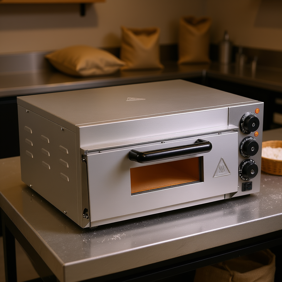 Forno elettrico commerciale da banco per pizza da 14 pollici con porta a cerniera e controllo a pulsante per attrezzature da panificio