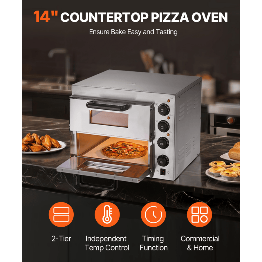 Forno Elettrico Commerciale da Banco per Pizza da 14 Pollici con 2 Teglie, 4 Manopole, Doppio Strato, Forno e Tostapane da Banco