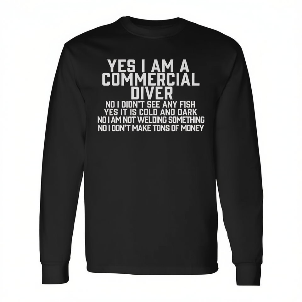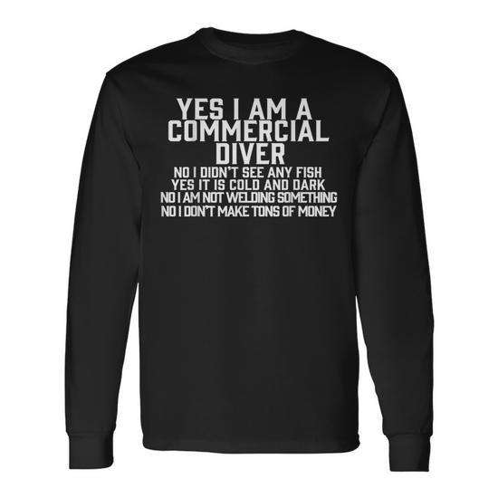Commercial Diver Long Sleeve T-Shirt Cotton Regular Fit Casual All Seasons Swim Dive Gear