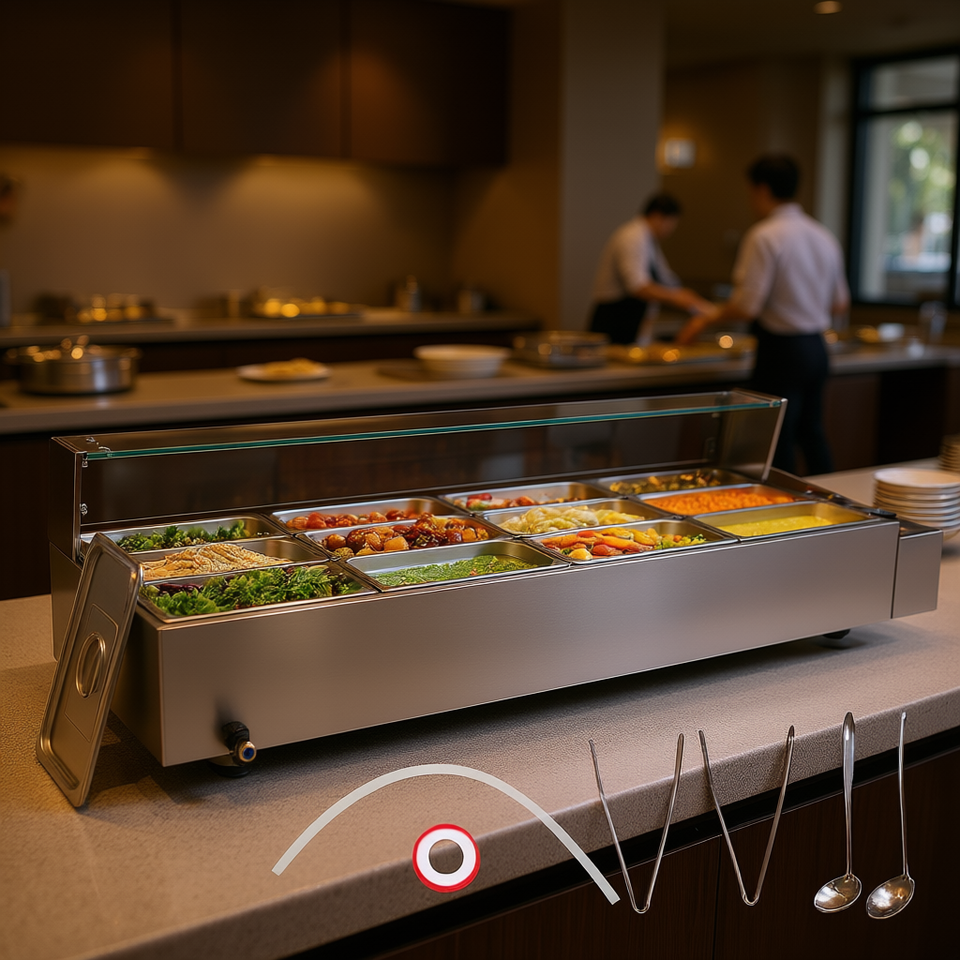 Scaldavivande Elettrico Commerciale da Banco 12*5Qt con Vetro Protettivo, Attrezzatura per Mantenere il Calore