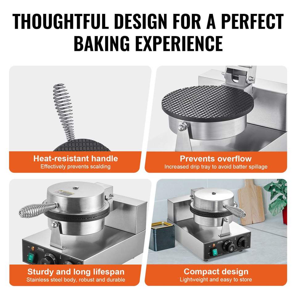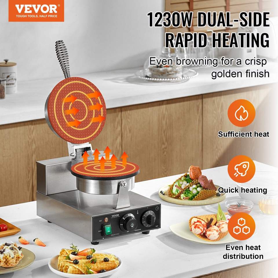 Macchina Elettrica Commerciale per Coni Gelato 1230W, Antiaderente in Acciaio Inox con Controllo della Temperatura