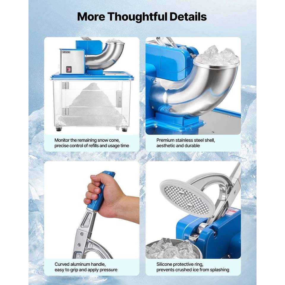 Macchina Elettrica Commerciale per Ghiaccio Tritato 661LBS/H, 350W, Acciaio Inossidabile, 4 Lame, Tritaghiaccio per Coni di Neve, 2000 Giri/min