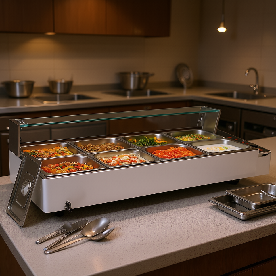 Commercial Electric Stainless Steel 8x8Qt Countertop Buffet Food Warmer Glass Shield 60-80C Warming Holding Equipment