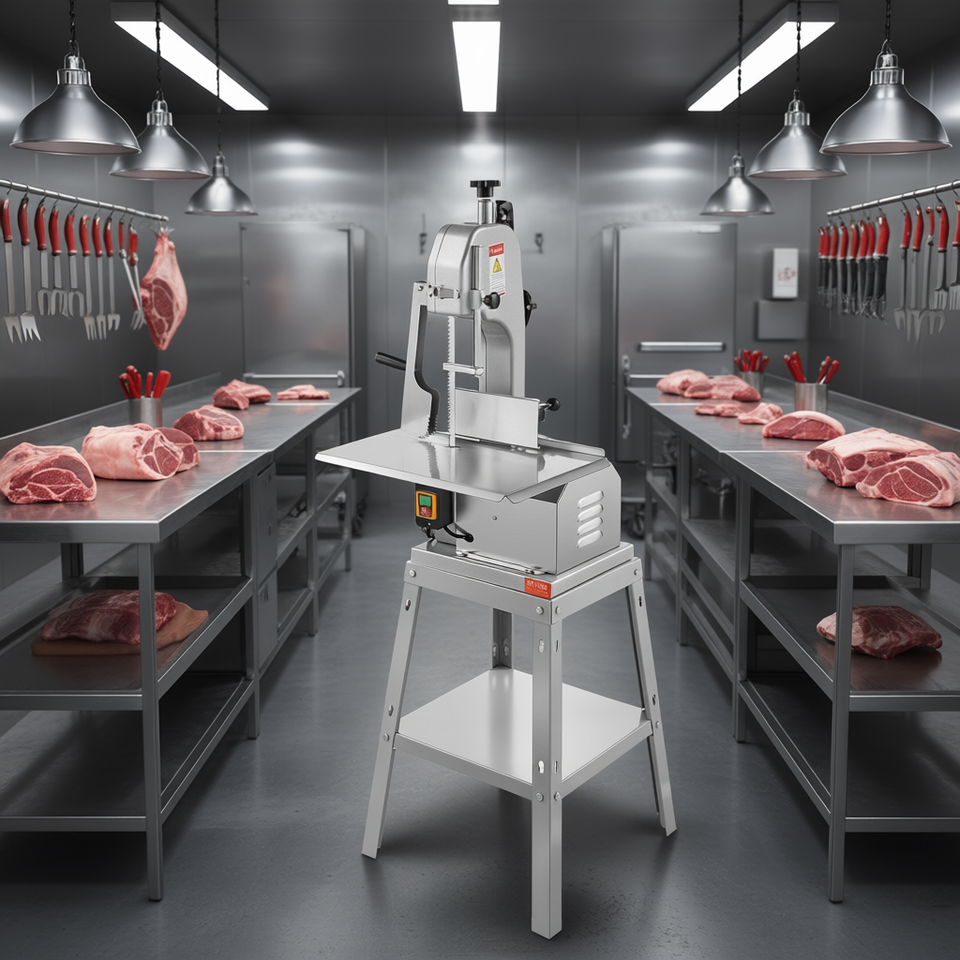Sega a Nastro Elettrica Commerciale per Carne 850W, Attrezzatura in Acciaio Inox per Taglio Ossa e Lavorazione Carni