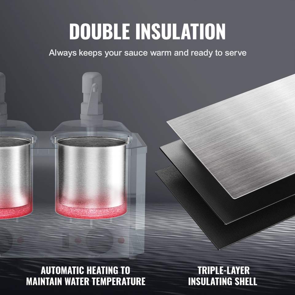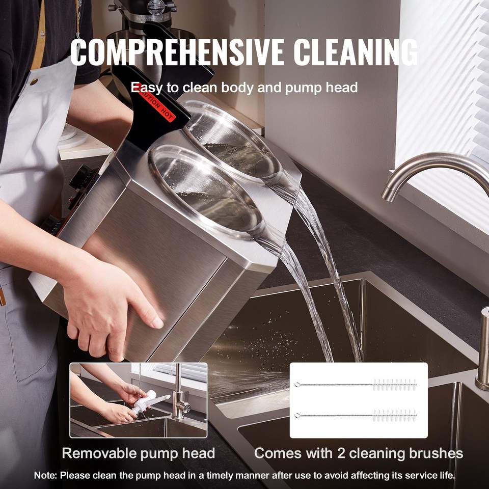 Dispenser Elettrico Commerciale per Formaggio 2.3x2 Qt, Scaldafonduta in Plastica con Doppia Pompa, Temperatura 86-230°F, Attrezzatura per Mantenimento Calore