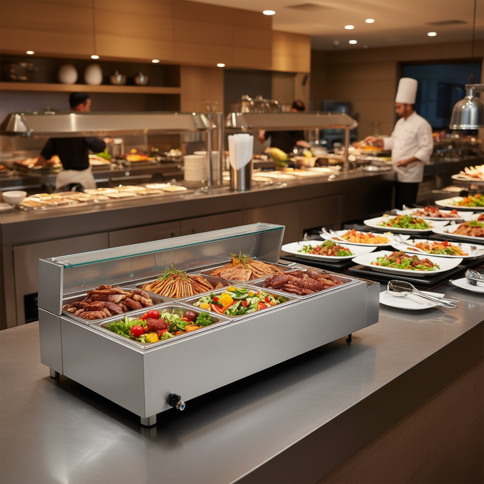 Scaldavivande Elettrico Commerciale da Banco 6*8Qt in Acciaio Inox 201 con Vetro Temperato, 60-80°C, Attrezzatura per Mantenere il Calore