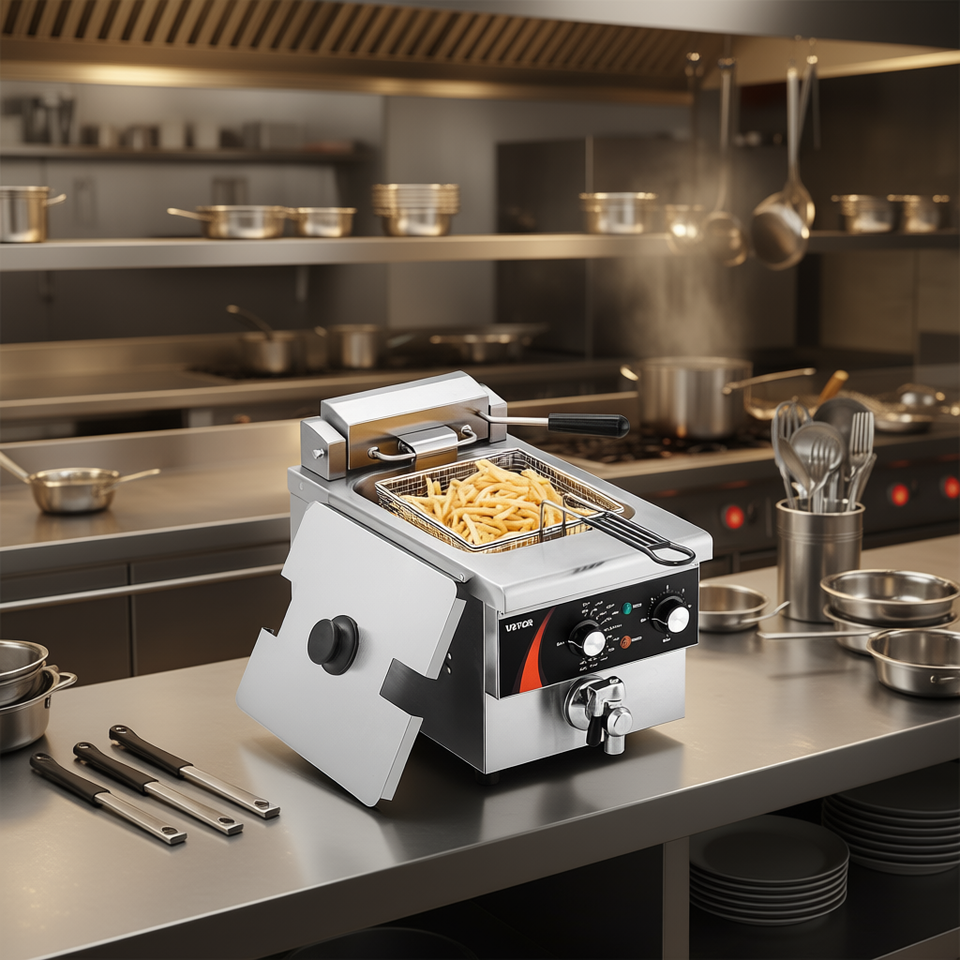 Friggitrice elettrica commerciale da 1750W, 9Qt, in acciaio inox, da banco, per uso ristorazione
