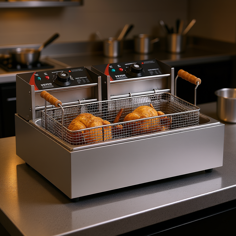 Friggitrice elettrica commerciale da 3000W, 18Qt, in acciaio inox, da banco, per uso ristorazione