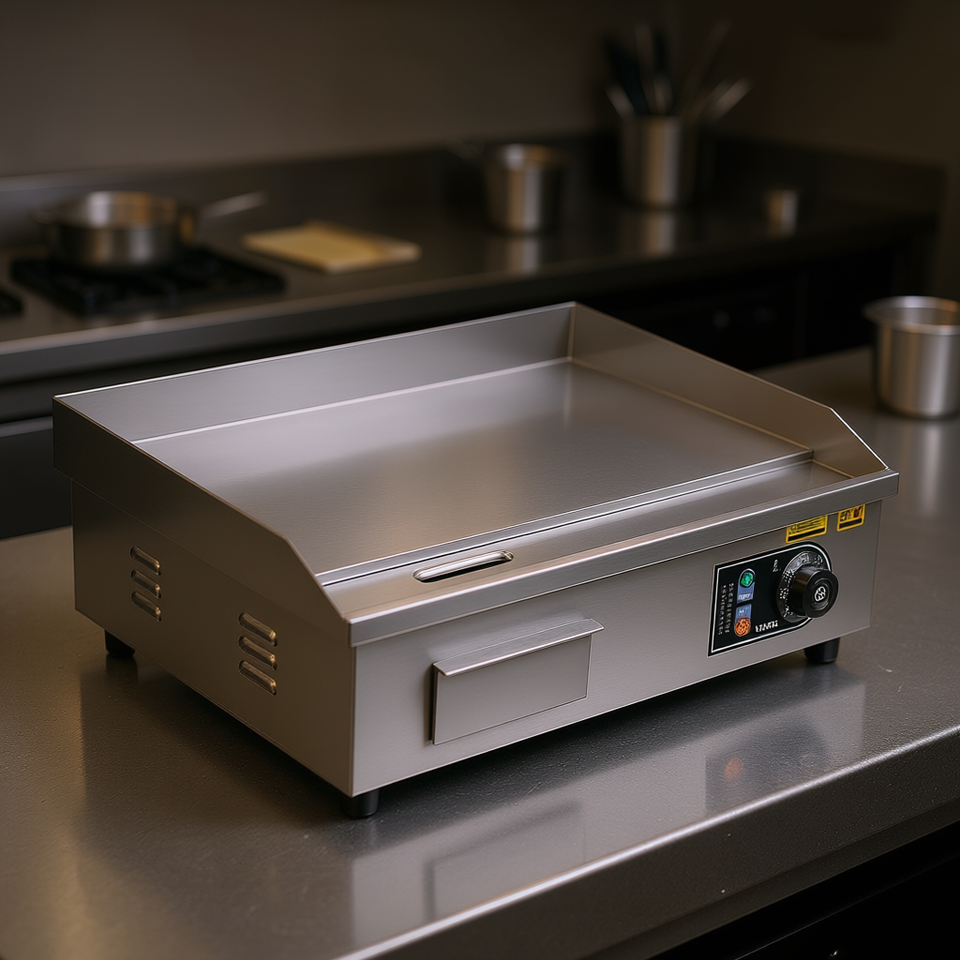 Commercial Electric Griddle 21.06 X 11.81 Inch Stainless Steel Adjustable Temp Control Full Flat Cooking Surface