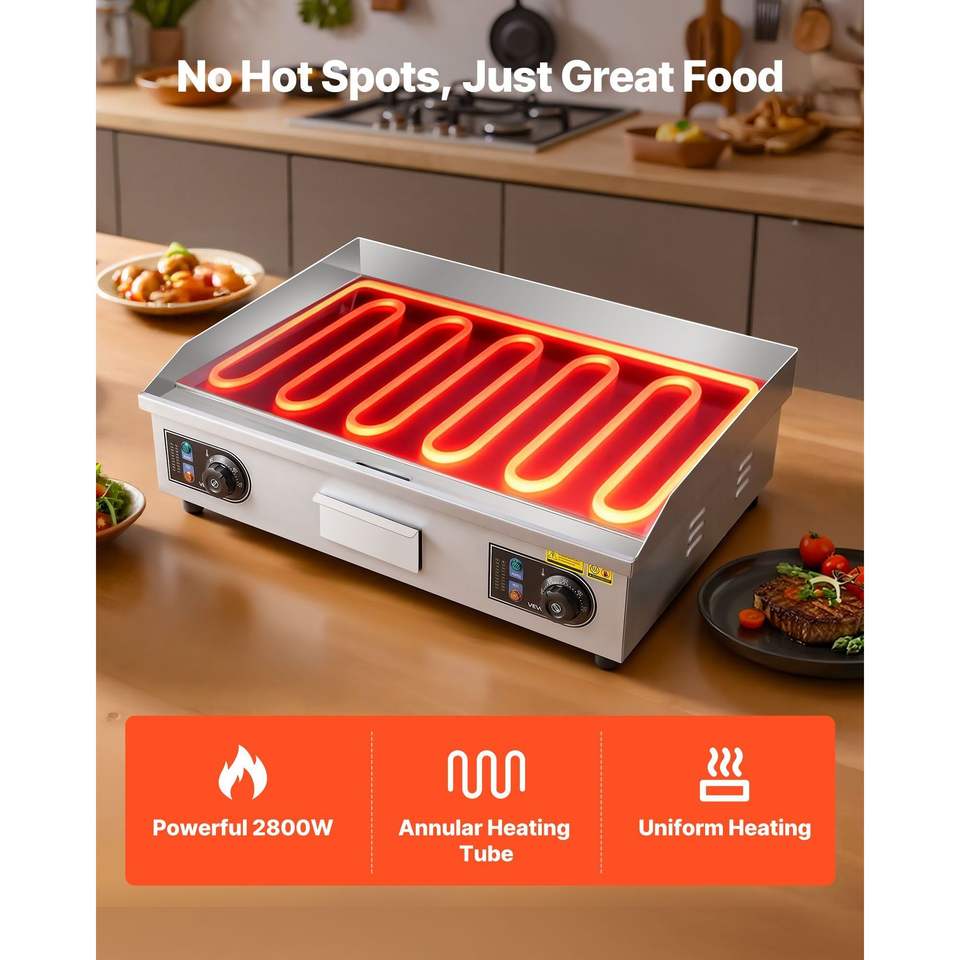 Piastra Elettrica Commerciale 65,5 x 40 cm, 2800W, Temperatura Regolabile 50-300°C, Attrezzatura da Cucina Professionale