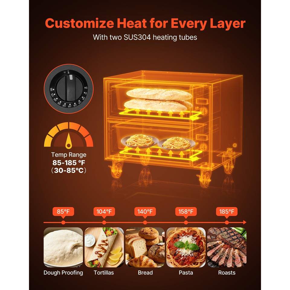 Scaldavivande Elettrico Commerciale a Due Cassetti in Acciaio Inossidabile, Standard 85°F, Armadio Scaldavivande per Attrezzature di Riscaldamento