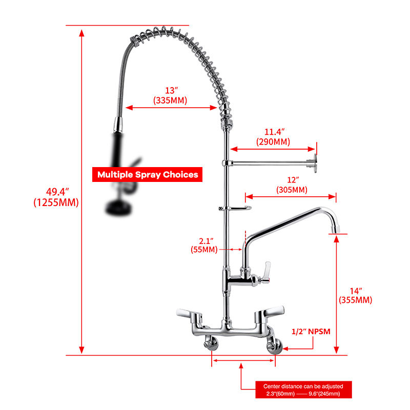 Rubinetto commerciale a parete lavello cucina miscelatore rubinetto Pre-risciacquo rubinetto commerciale con spruzzatore