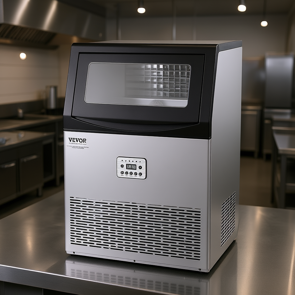 Macchina per il Ghiaccio Commerciale 90 libbre/24H, Cubetti di Ghiaccio, Acciaio Inossidabile, Uso Esterno Indipendente