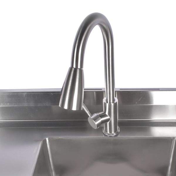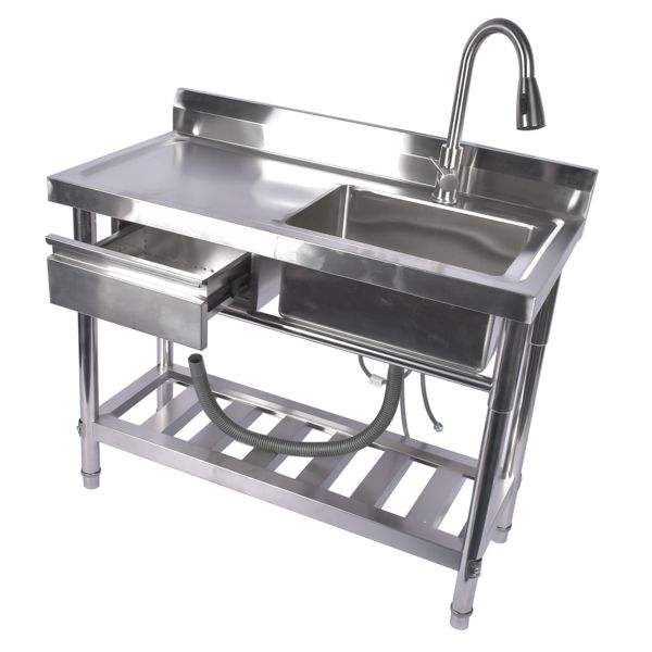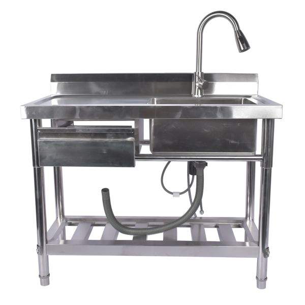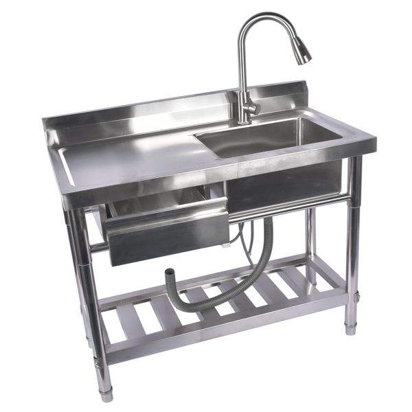 Commercial Freestanding Stainless Steel Kitchen Sink with Right Hand Design 39.3\" Drawer Pull-Out Faucet Utility Kitchen Sinks