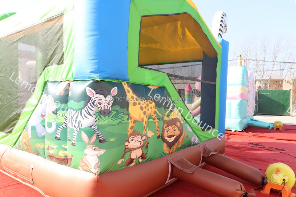 Castello Gonfiabile Commerciale a Tema Giungla con Scivolo Asciutto per Bambini - Combo Giungla da Esterno