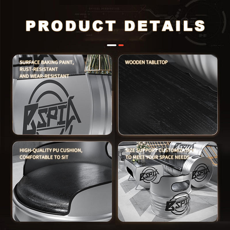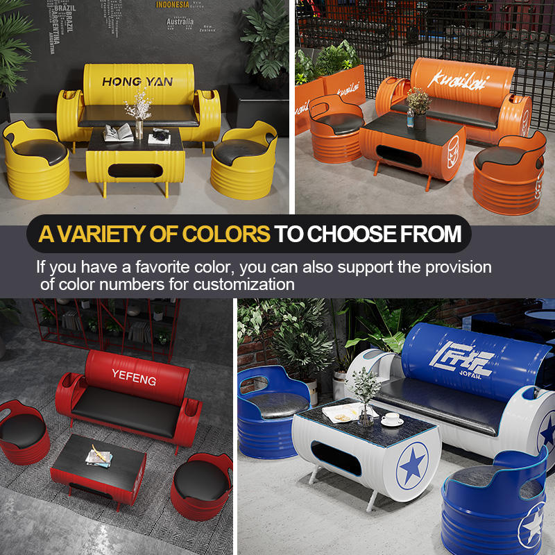 Commercial Grade Oil Drum Sofa Coffee Table Wrought Iron Leisure Milk Tea Shop Industrial Furniture Table Chair Set