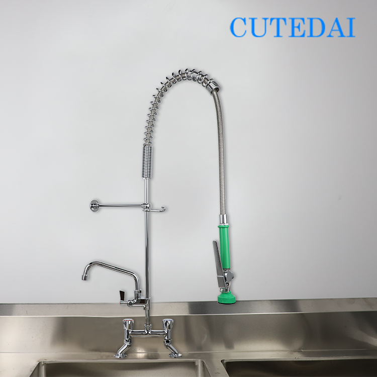 Commercial Industrial Design Deck Mount Faucet for Restaurants Pre Rinse with Spray Garden Barrel Arm with Spraying Mechanism