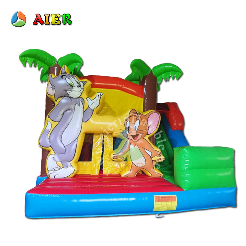 Scivolo Gonfiabile Commerciale Tom e Jerry con Decorazione Palma, Castello Gonfiabile per Bambini, Parco Divertimenti Esterno per Noleggio Feste