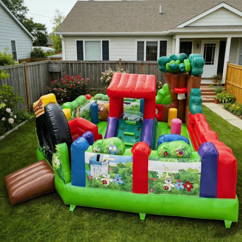 Castello Gonfiabile Commerciale Multigioco per Bambini con Scivolo e Tunnel per Noleggio Feste