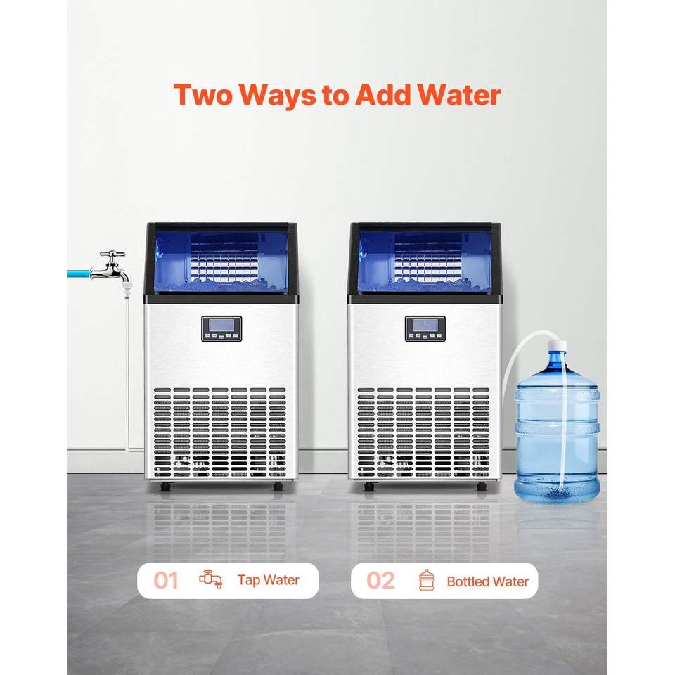 Macchina per il Ghiaccio Professionale da Cucina, Produzione 100 libbre/24H, Capacità di Stoccaggio 33 libbre, 45 Cubetti di Ghiaccio, 15 Minuti, Display Digitale LED