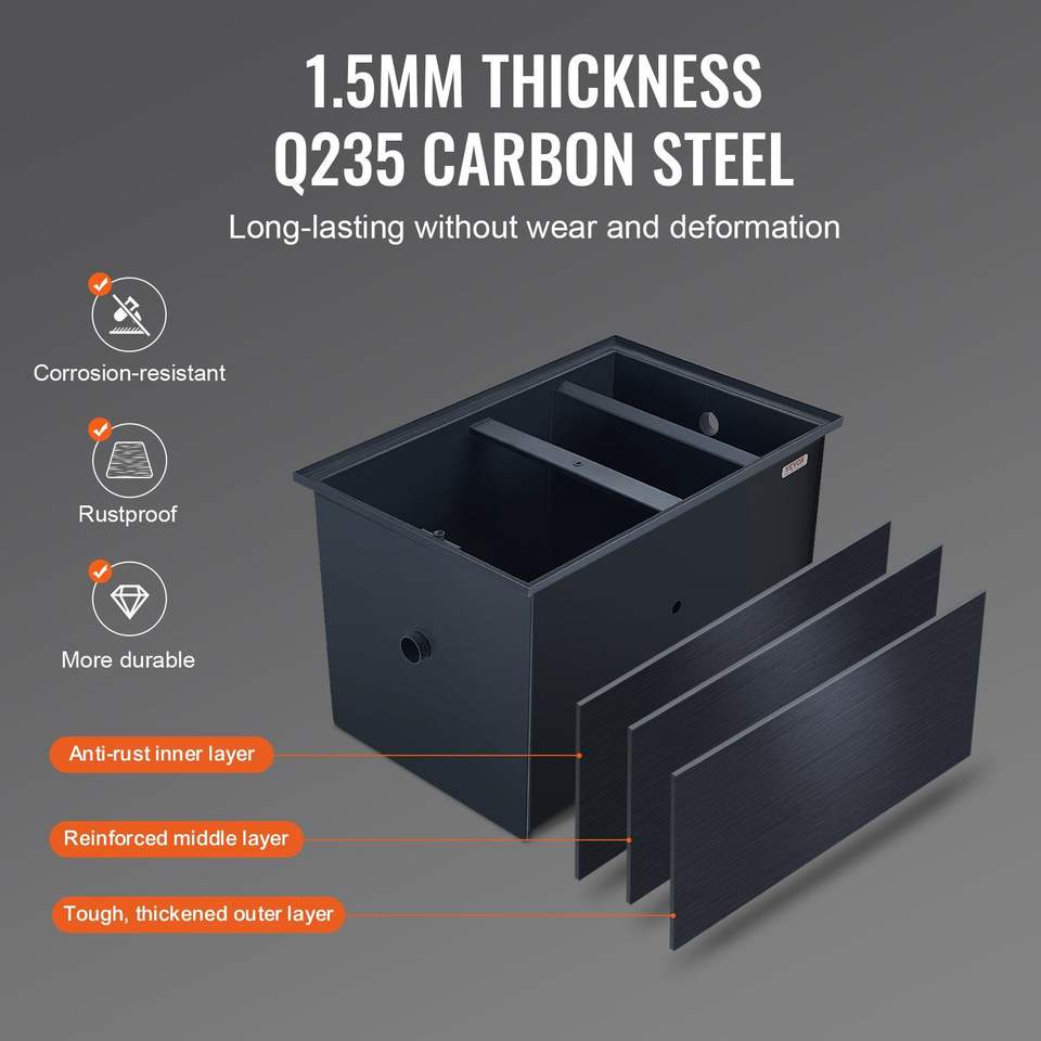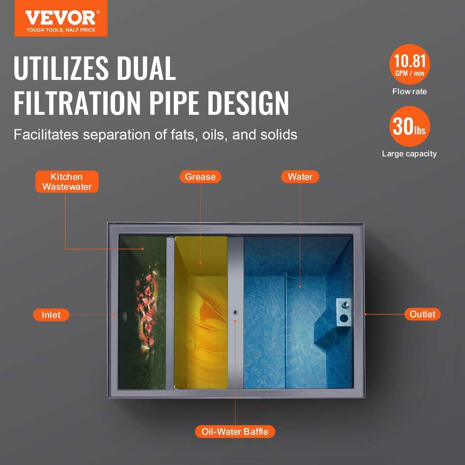 Attrezzatura per Cucine Commerciali: Separatore di Grasso a Ingresso Laterale da 30 LBS in Acciaio al Carbonio, 10.8 GPM di Rifiuti