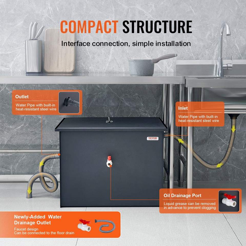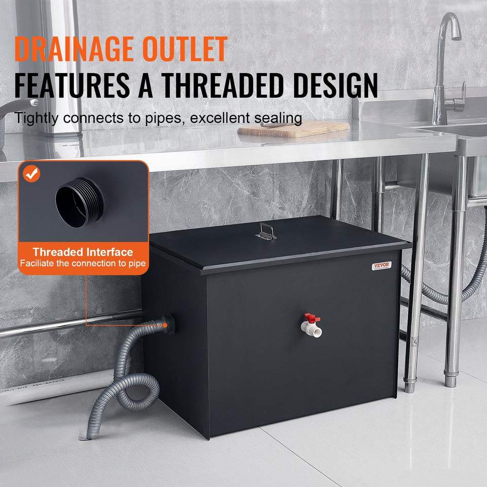 Attrezzatura per Cucine Commerciali: Trappola per Grasso in Acciaio al Carbonio da 40 LBS, 15.2 GPM, Intercettore di Rifiuti con Ingresso Laterale per Lavello, 40 LBS Grasso
