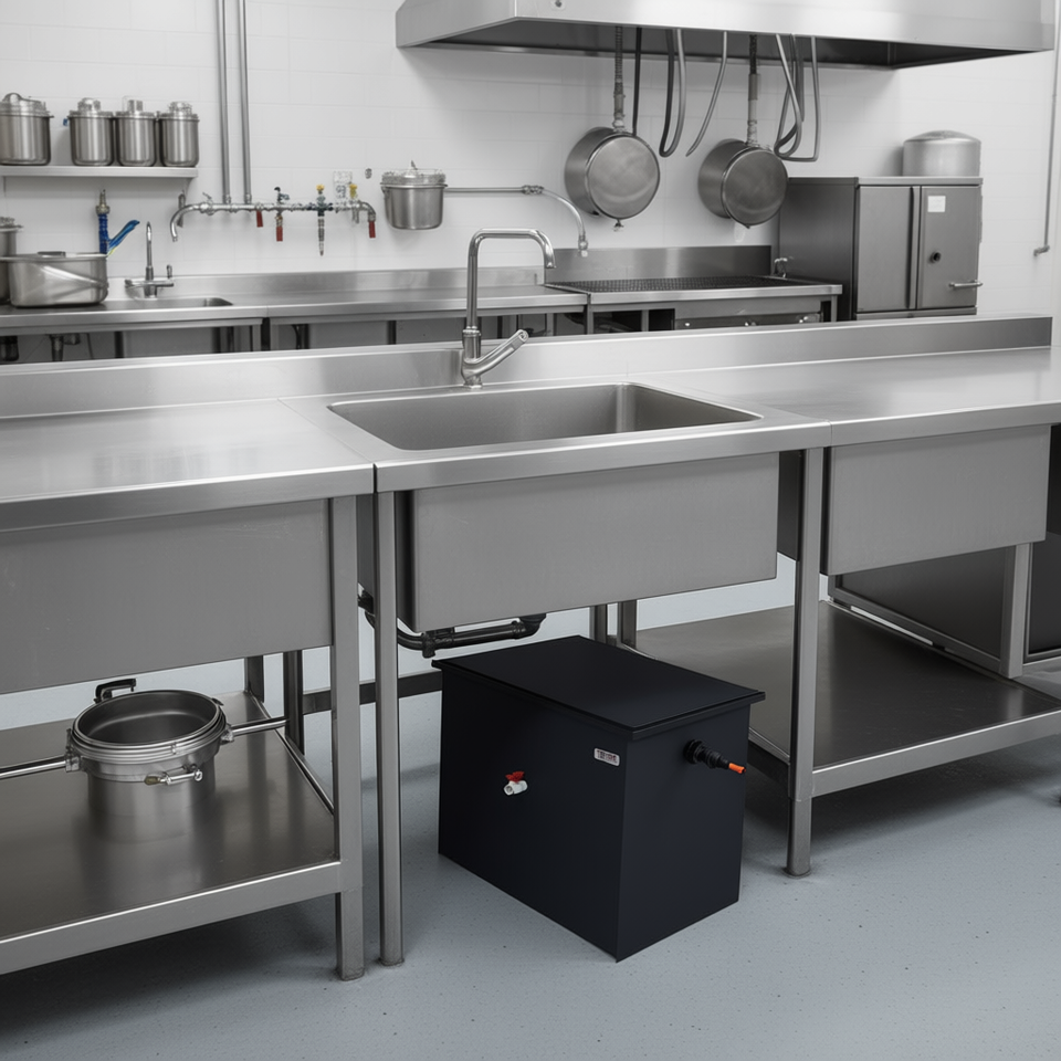 Grease Interceptor Trap 50Lbs Carbon Steel Waste Water Filter Commercial Kitchen Equipment Side Entrance 25 Gpm