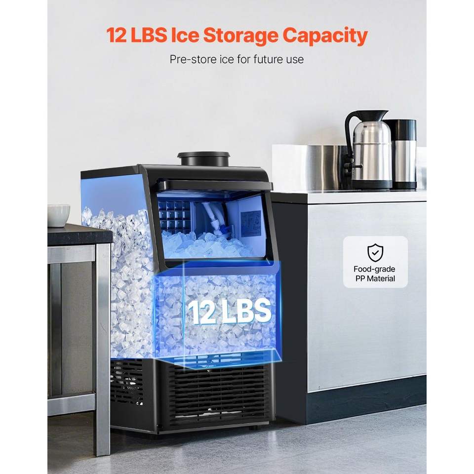 Macchina per il Ghiaccio Professionale da 70 libbre/24H con Capacità di Stoccaggio di 12 libbre, 36 Cubetti di Ghiaccio, 15 Minuti di Produzione, Display Digitale a LED
