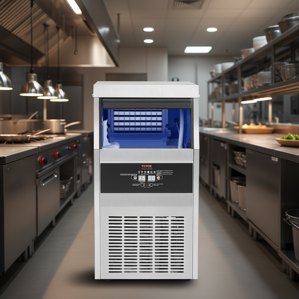 Fabbricatore di Ghiaccio Commerciale 90 Libbre al Giorno, 24 Libbre di Capacità, Autoportante in Acciaio Inox con Display Digitale LED
