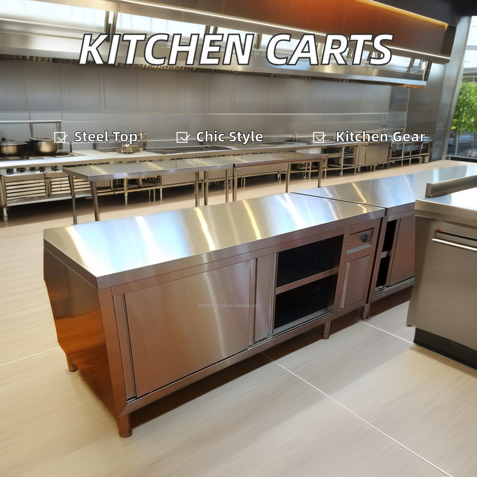 Attrezzatura commerciale da cucina doppia porta scorrevole in acciaio inox banco da lavoro tavolo ristorante cucina isola e carrello