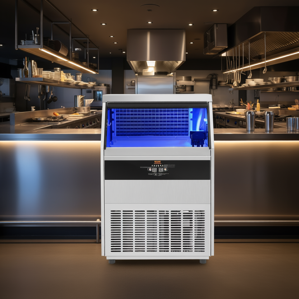 Macchina per Ghiaccio Commerciale 130 lbs 160 Cubetti, Display LED, Acciaio Inox, Elettrica, per Uso Ristorante