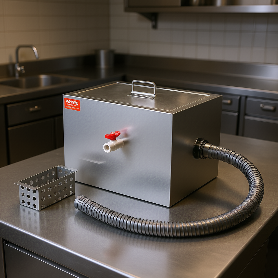 Trappola per Grasso in Acciaio Inossidabile 8 Libbre Ingresso Laterale 2.8 GPM Attrezzatura per Cucine Commerciali