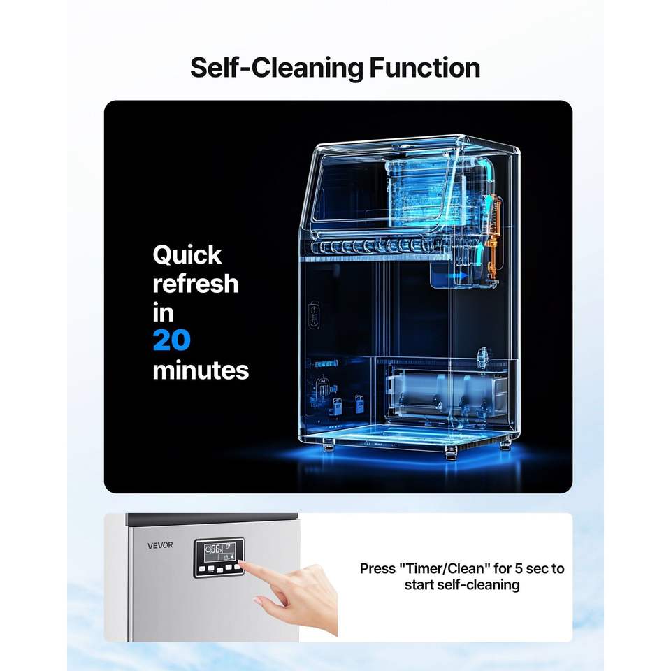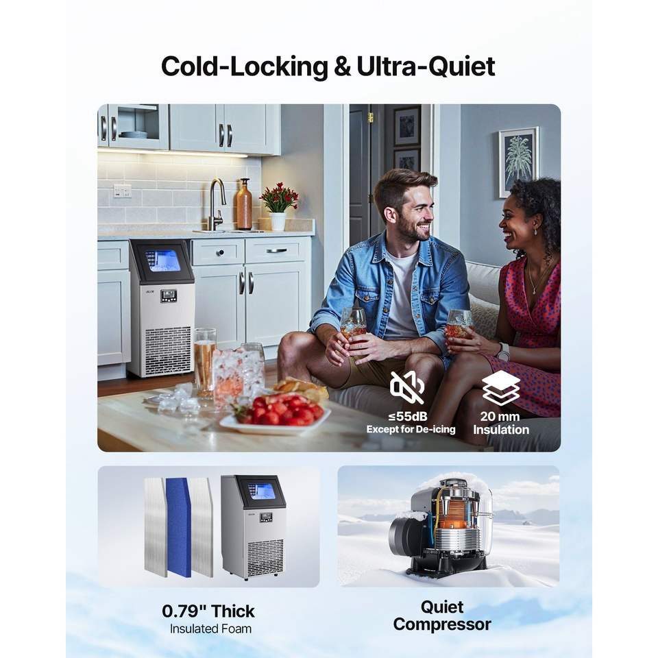 Macchina per il Ghiaccio Commerciale da Cucina in Acciaio Inossidabile, da Banco, 100 Libbre/24h, 28 Libbre di Capacità, 45 Cubetti per Ciclo